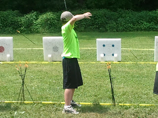 Cannon is a master "archer" and loves learning about how to build fires. He also loves the variety of sports they play. I thought the cement handprint was a cool project -- although had I known I would be mixing cement for 4 hours on Tuesday, I would have worn different clothes.